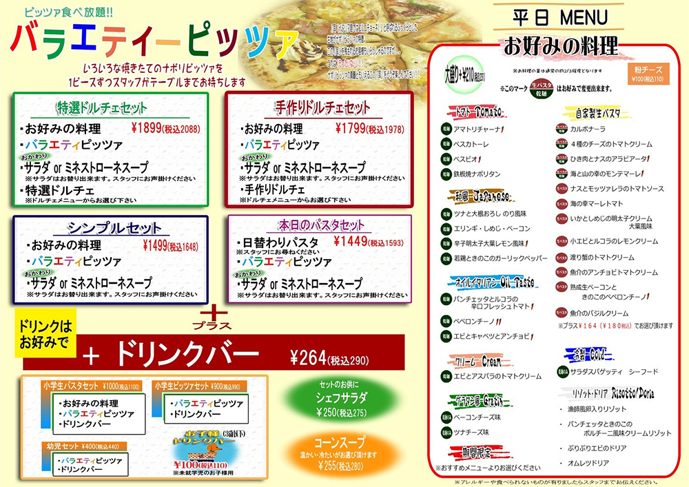 石窯で焼きあげるピッツァが食べ放題!